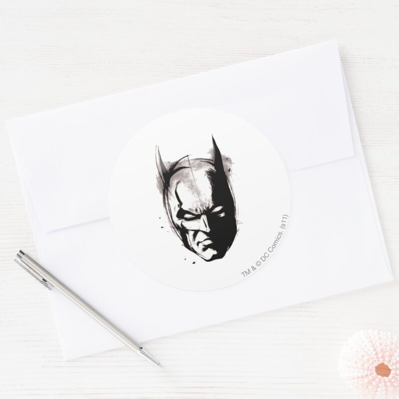 Batman Drawn Face Classic Round Sticker vinyl sticker, waterproof durable collectible sticker for laptop, phone, bottle, bike, notebook, helmet, and accessories.