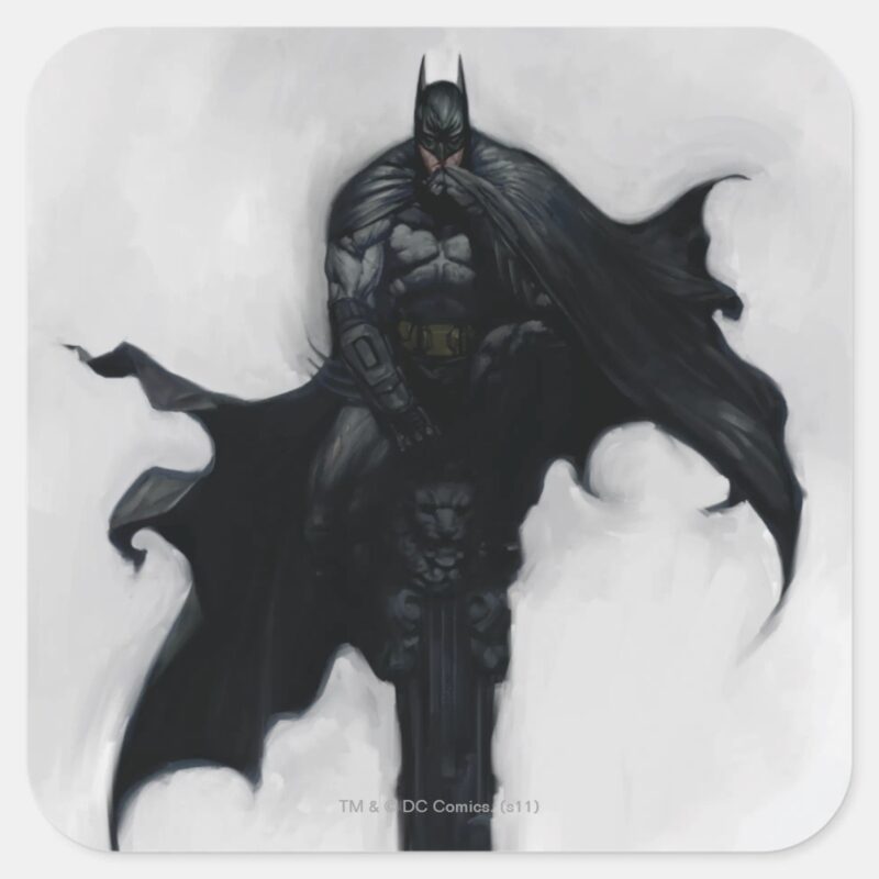 Batman Illustration Square Sticker vinyl sticker, waterproof durable collectible sticker for laptop, phone, bottle, bike, notebook, helmet, and accessories.