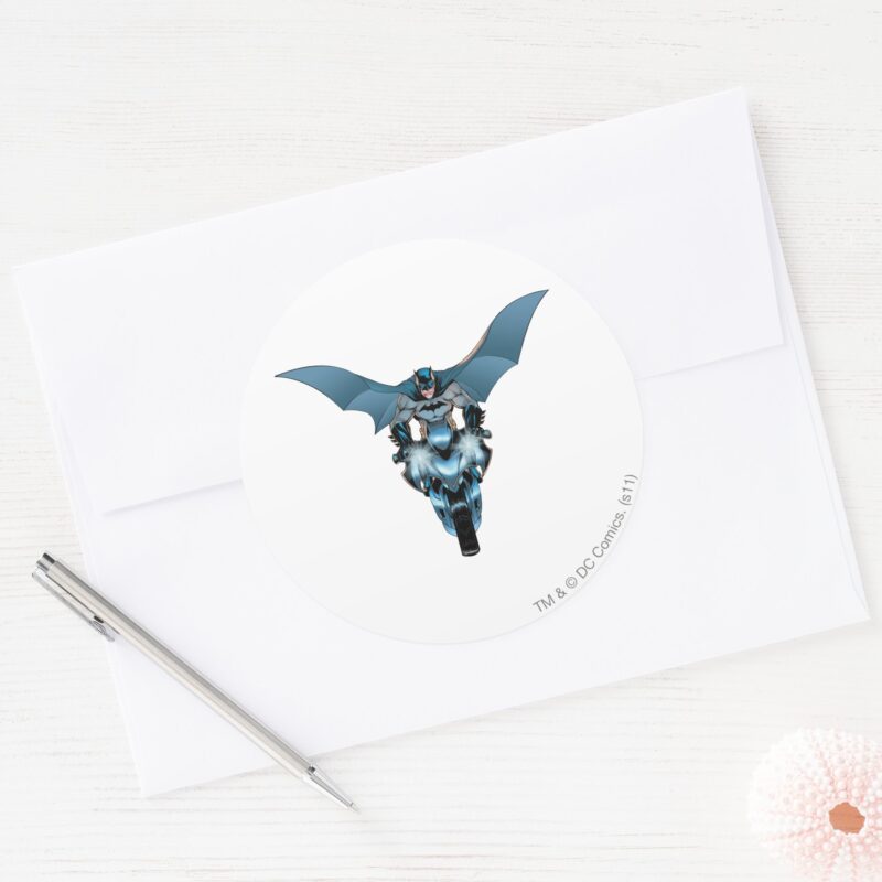 Batman On Bike With Cape Classic Round Sticker