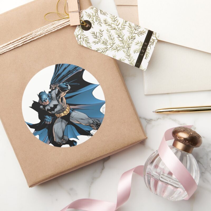 Batman Strong Shadow Classic Round Sticker vinyl sticker, waterproof durable collectible sticker for laptop, phone, bottle, bike, notebook, helmet, and accessories.