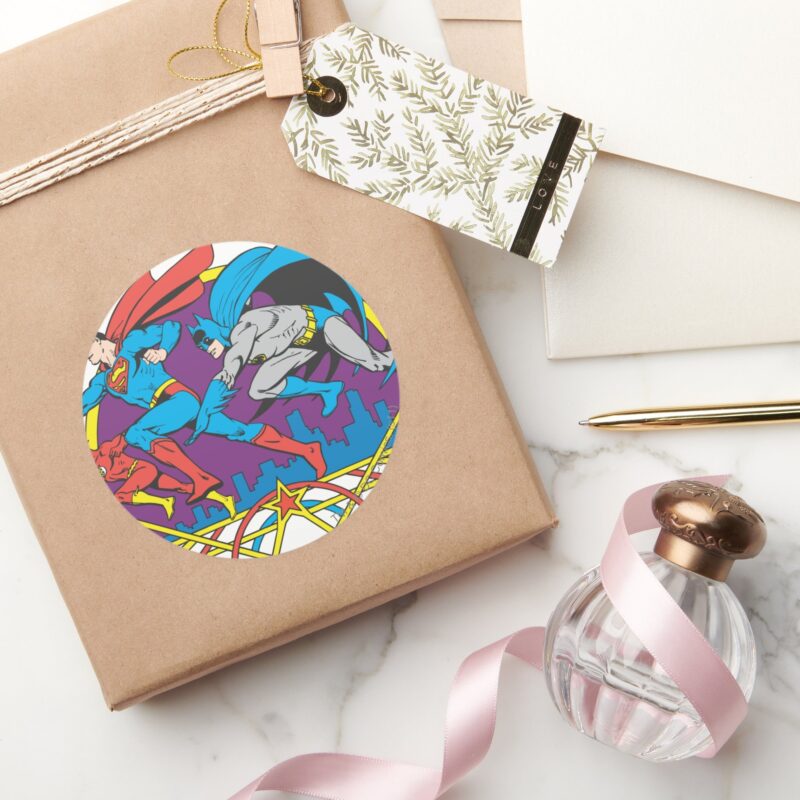 Batman Superman Flash Classic Round Sticker