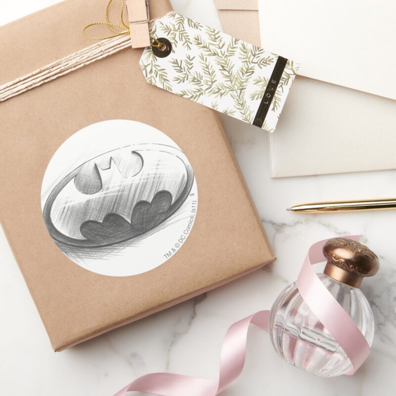 Batman Symbol Insignia Drawing Logo Classic Round Sticker vinyl sticker, waterproof durable collectible sticker for laptop, phone, bottle, bike, notebook, helmet, and accessories.