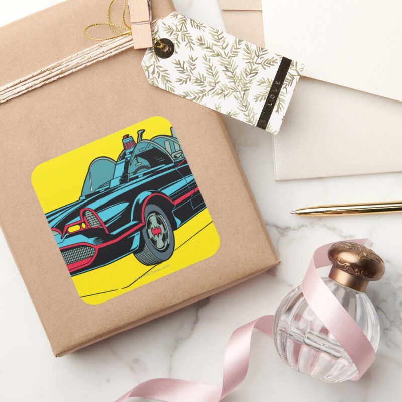 Batmobile Square Sticker vinyl sticker, waterproof durable collectible sticker for laptop, phone, bottle, bike, notebook, helmet, and accessories.