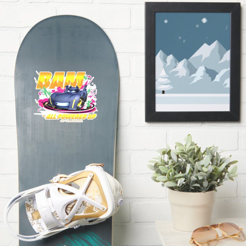 Batwheels™ Bam All Powered Up Sticker vinyl sticker, waterproof durable collectible sticker for laptop, phone, bottle, bike, notebook, helmet, and accessories.