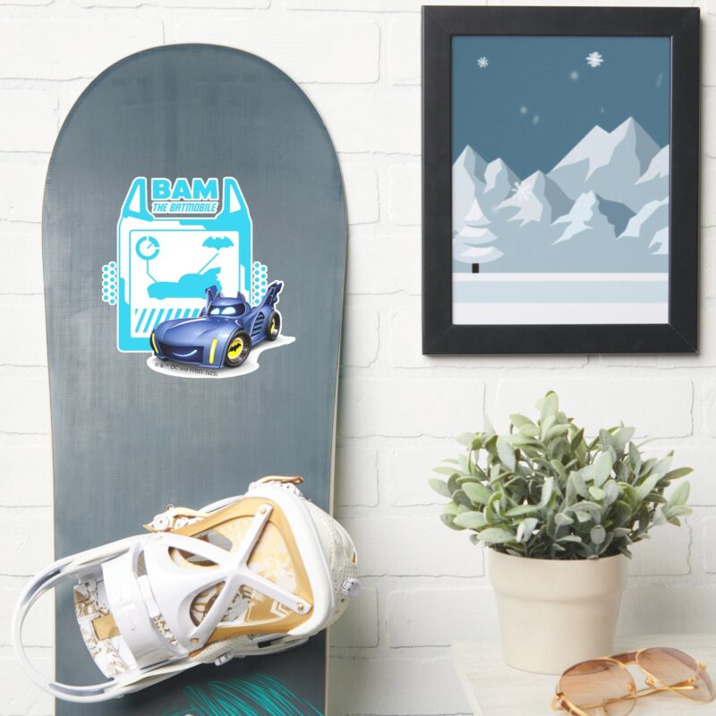 Batwheels™ Bam The Batmobile Sticker vinyl sticker, waterproof durable collectible sticker for laptop, phone, bottle, bike, notebook, helmet, and accessories.