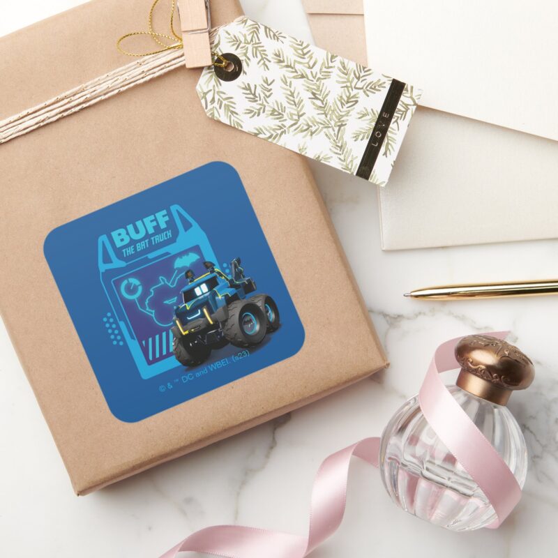 Batwheels™ Buff The Bat Truck Square Sticker vinyl sticker, waterproof durable collectible sticker for laptop, phone, bottle, bike, notebook, helmet, and accessories.