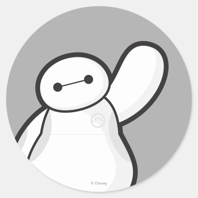 Baymax Waving Classic Round Sticker vinyl sticker, waterproof durable collectible sticker for laptop, phone, bottle, bike, notebook, helmet, and accessories.