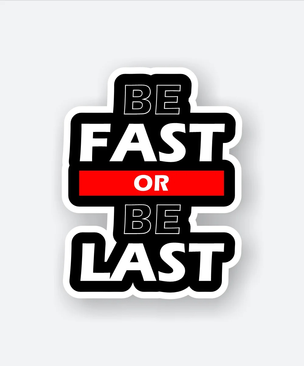 Be Fast Or Be Last Sticker vinyl sticker, waterproof durable collectible sticker for laptop, phone, bottle, bike, notebook, helmet, and accessories.