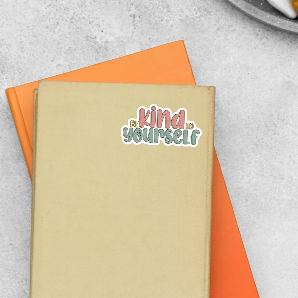Be Kind To Yourself Motivational Stickers vinyl sticker, waterproof durable collectible sticker for laptop, phone, bottle, bike, notebook, helmet, and accessories.