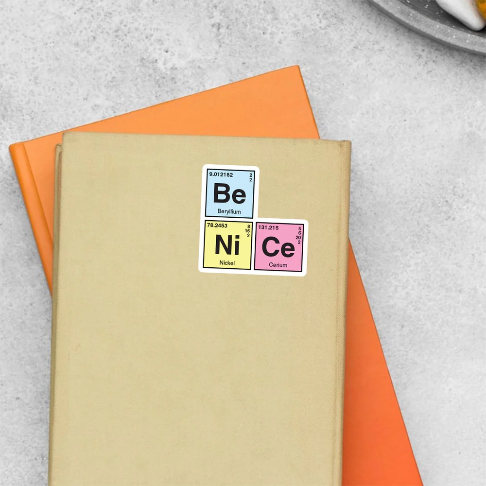 Be Nice Witty Stickers vinyl sticker, waterproof durable collectible sticker for laptop, phone, bottle, bike, notebook, helmet, and accessories.