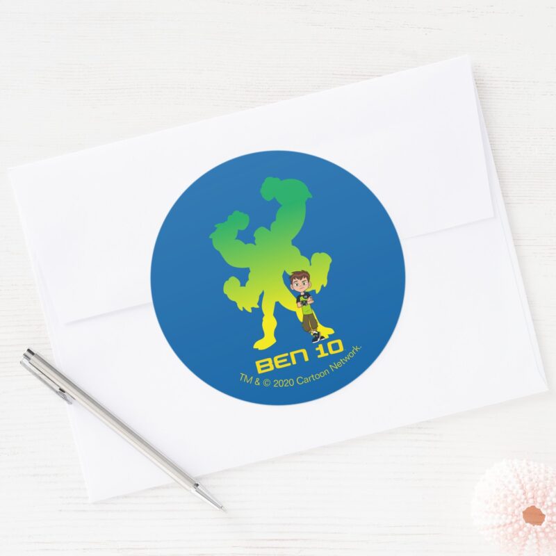 Ben 10 Four Arms Shadow Classic Round Sticker vinyl sticker, waterproof durable collectible sticker for laptop, phone, bottle, bike, notebook, helmet, and accessories.