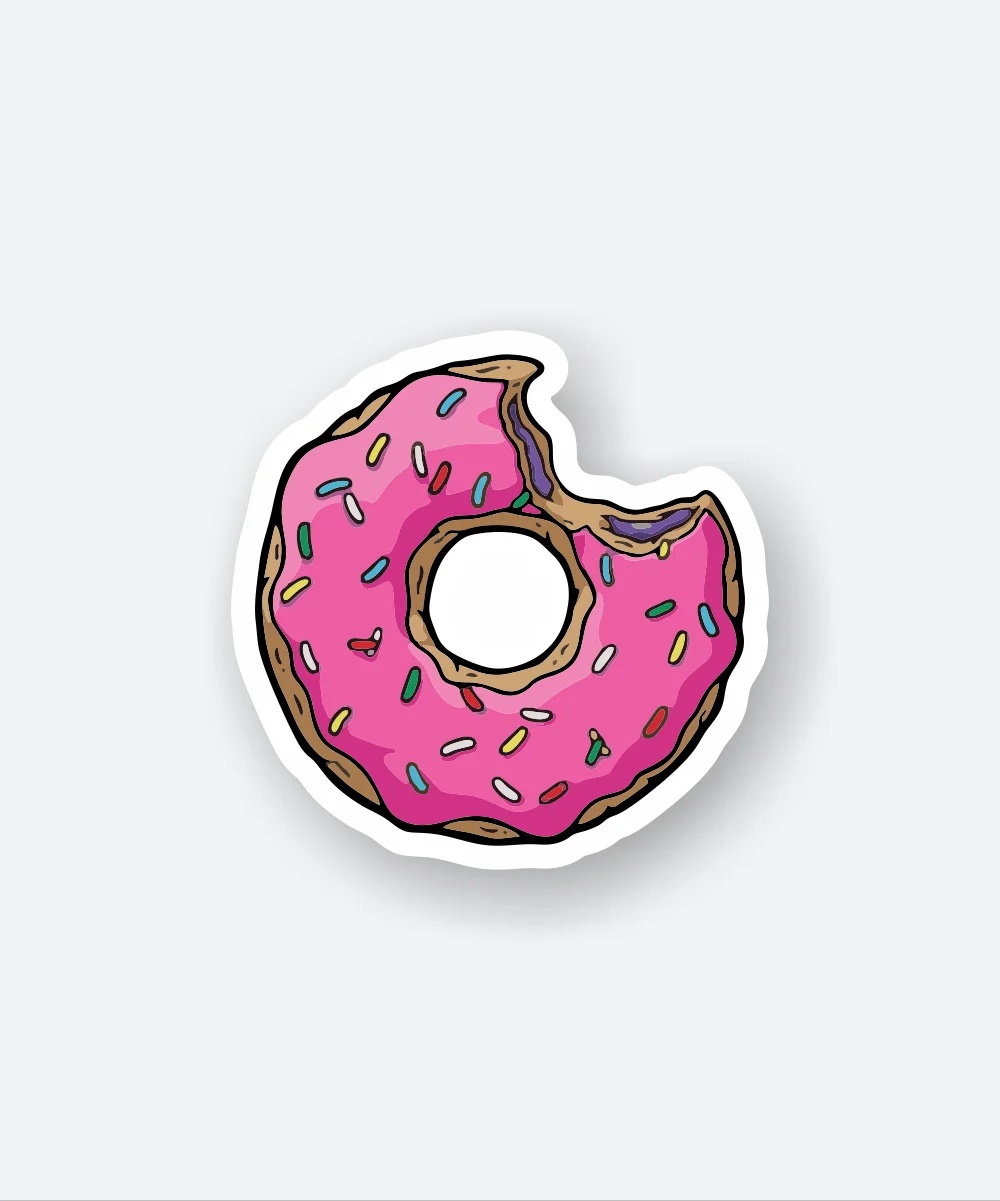 Bitten Donut Sticker vinyl sticker, waterproof durable collectible sticker for laptop, phone, bottle, bike, notebook, helmet, and accessories.
