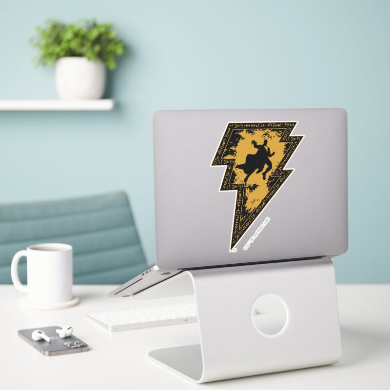 Black Adam Distressed Lightning Bolt Graphic Sticker vinyl sticker, waterproof durable collectible sticker for laptop, phone, bottle, bike, notebook, helmet, and accessories.