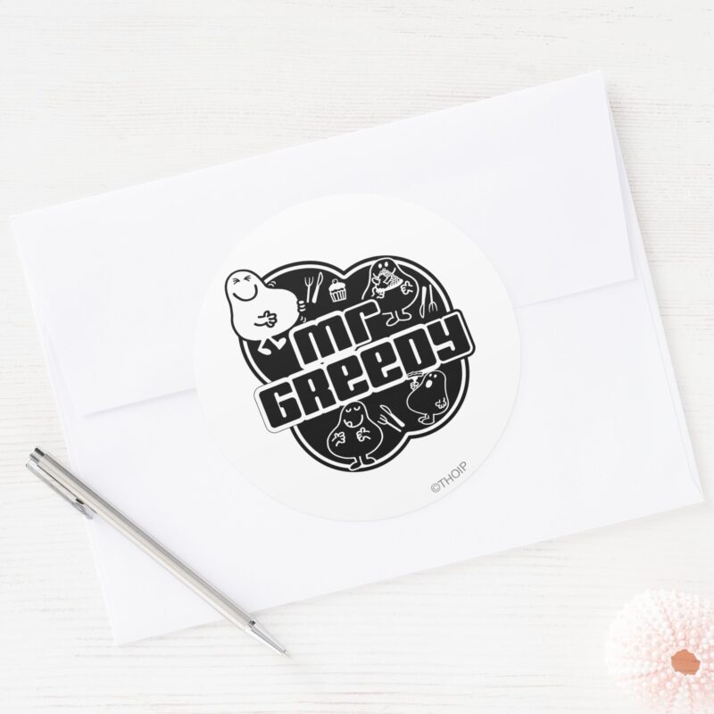 Be the first to review “Black White Mr. Greedy Classic Round Sticker”