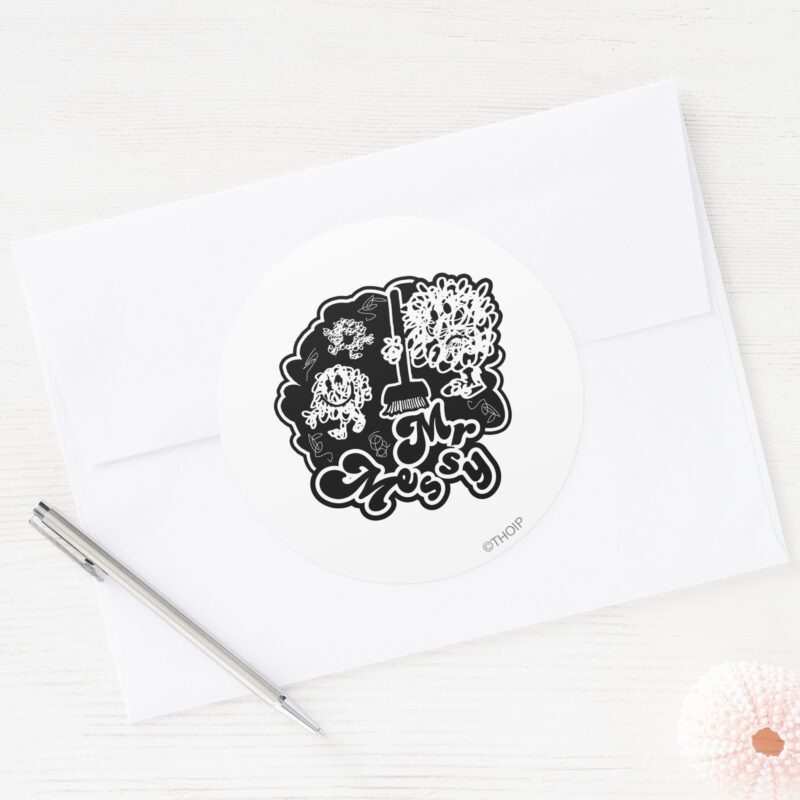 Black White Mr. Messy Cleaning Classic Round Sticker