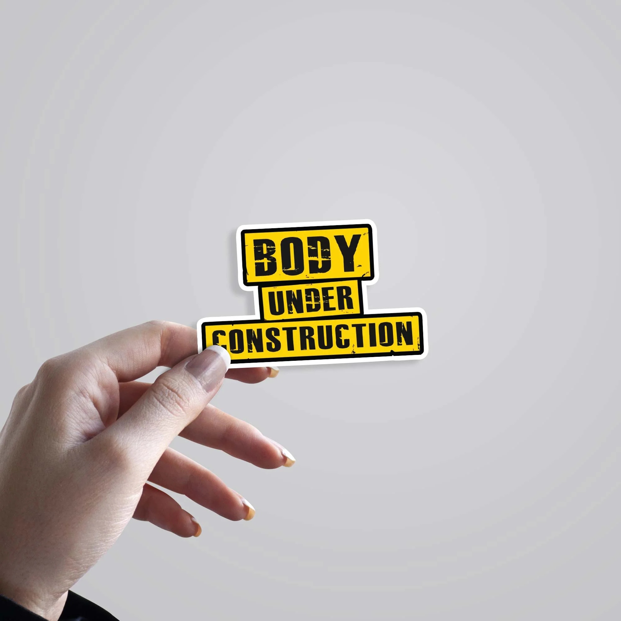 Body Under Construction Witty Stickers vinyl sticker, waterproof durable collectible sticker for laptop, phone, bottle, bike, notebook, helmet, and accessories.