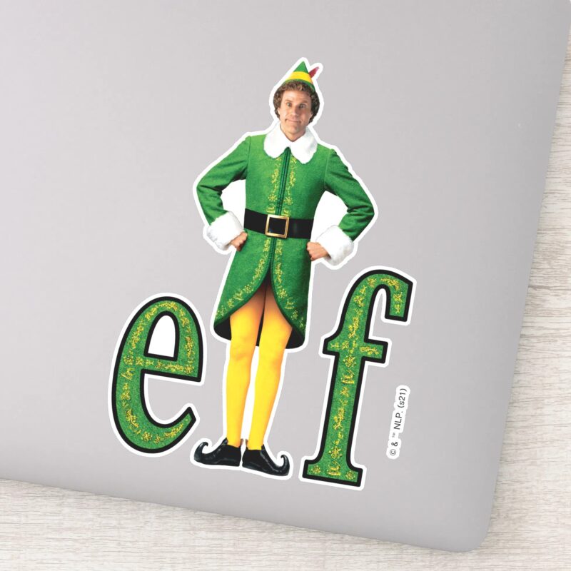 Buddy The Elf Movie Logo Sticker vinyl sticker, waterproof durable collectible sticker for laptop, phone, bottle, bike, notebook, helmet, and accessories.