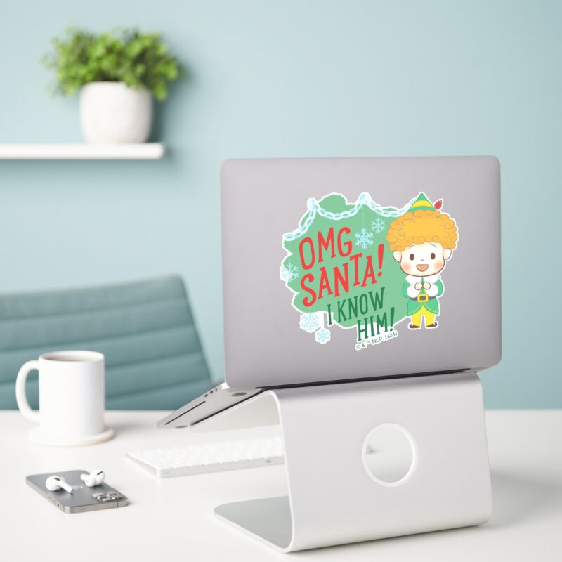 Buddy The Elf OMG Santa I Know Him Sticker vinyl sticker, waterproof durable collectible sticker for laptop, phone, bottle, bike, notebook, helmet, and accessories.