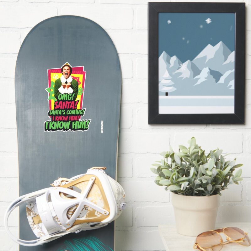 Buddy The Elf OMG Santa Sticker vinyl sticker, waterproof durable collectible sticker for laptop, phone, bottle, bike, notebook, helmet, and accessories.