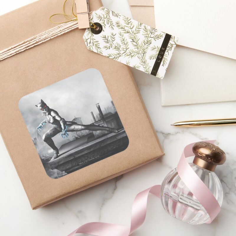 Catwoman Lightning Square Sticker vinyl sticker, waterproof durable collectible sticker for laptop, phone, bottle, bike, notebook, helmet, and accessories.