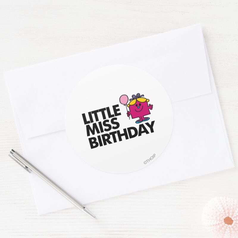 Celebrate Little Miss Birthday Classic Round Sticker vinyl sticker, waterproof durable collectible sticker for laptop, phone, bottle, bike, notebook, helmet, and accessories.