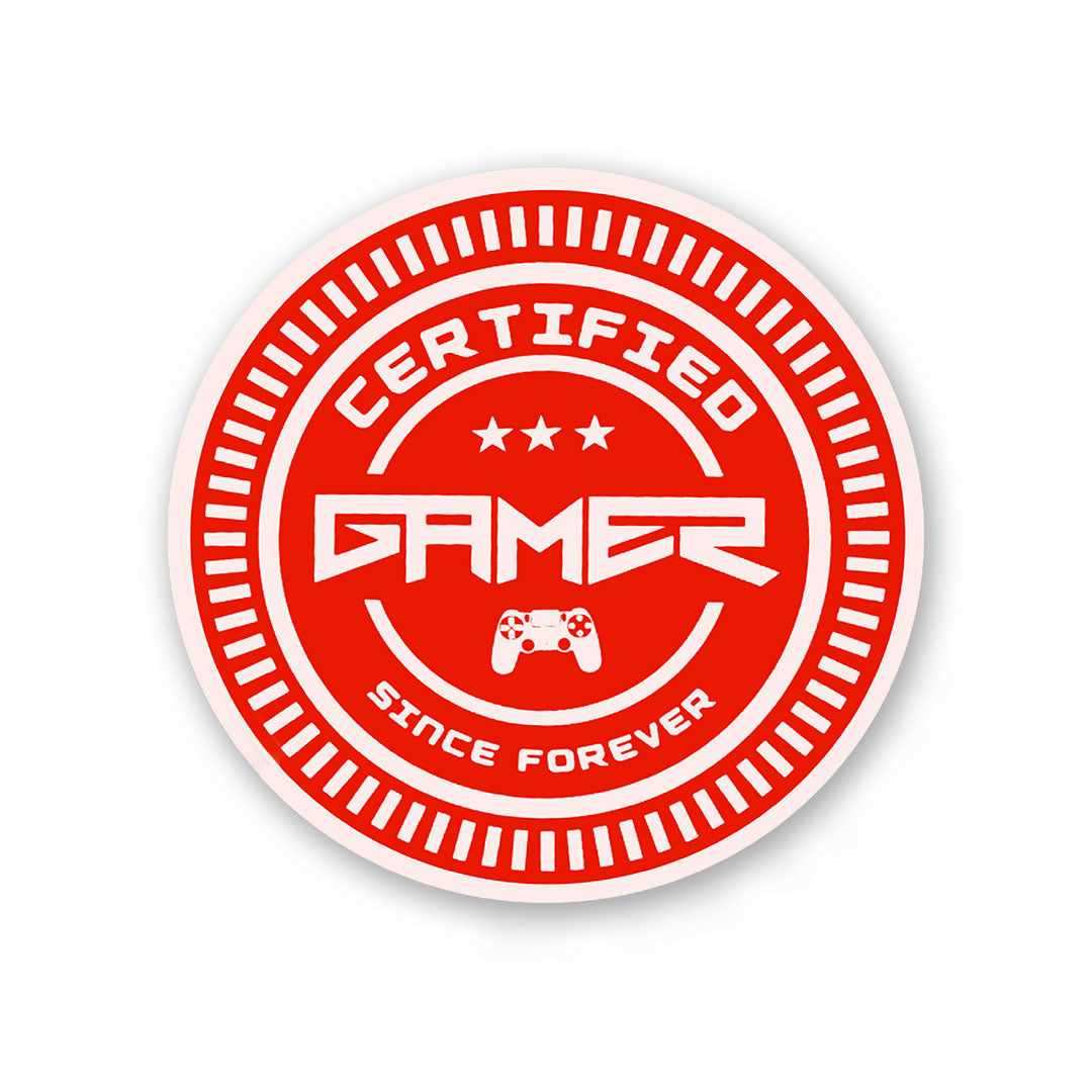 Certified Gamer Sticker vinyl sticker, waterproof durable collectible sticker for laptop, phone, bottle, bike, notebook, helmet, and accessories.