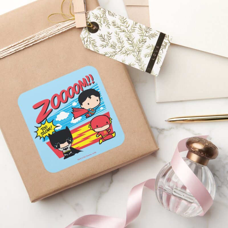 Decorate your laptop, water bottle, or notebook with this vibrant Chibi Batman Too Slow Square Sticker . Made from waterproof vinyl, it’s perfect for anime fans who love bold designs.