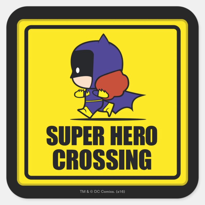 Chibi Batwoman Super Hero Crossing Sign Square Sticker vinyl sticker, waterproof durable collectible sticker for laptop, phone, bottle, bike, notebook, helmet, and accessories.