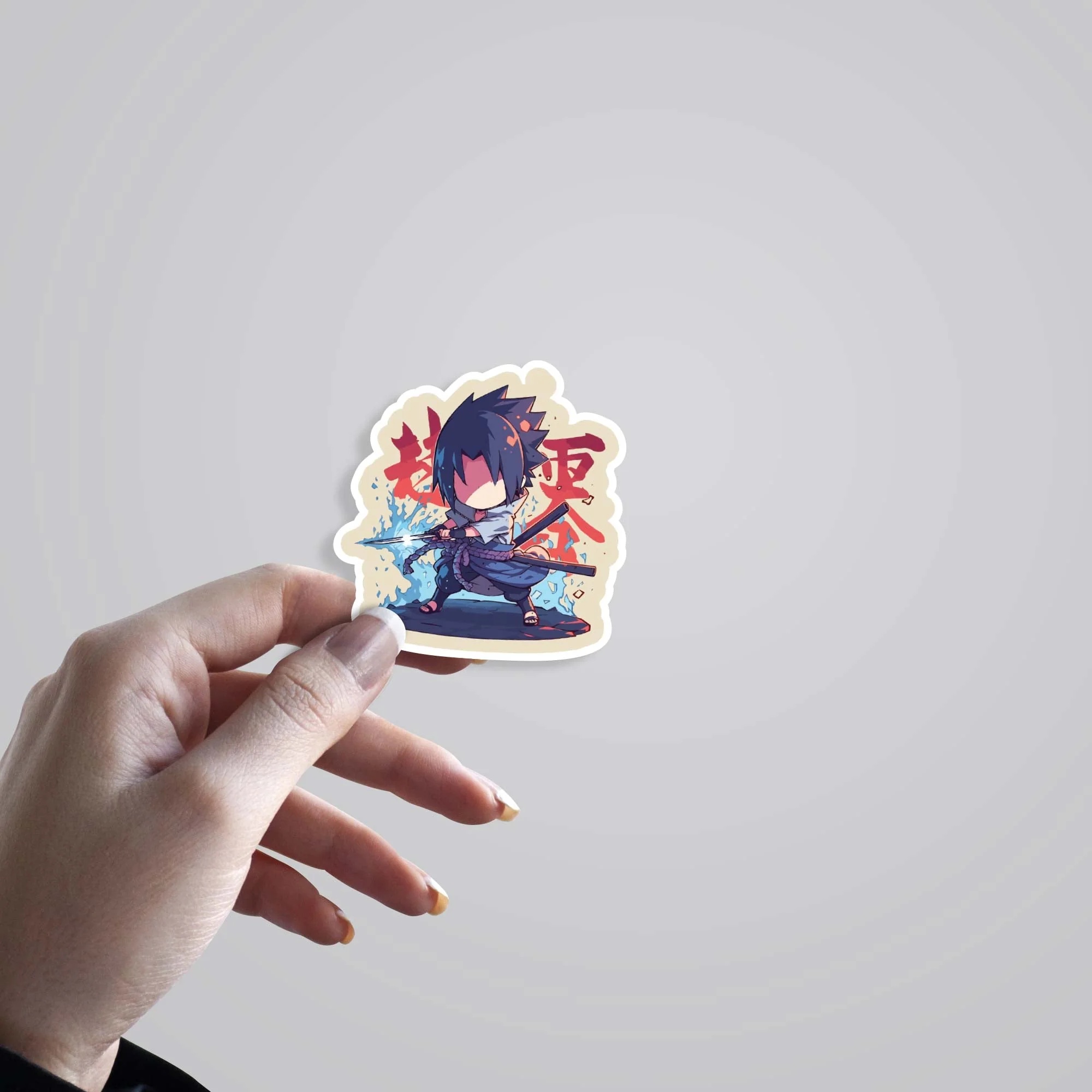 Chibi Uchiha Sasuke Anime Stickers vinyl sticker, waterproof durable collectible sticker for laptop, phone, bottle, bike, notebook, helmet, and accessories.