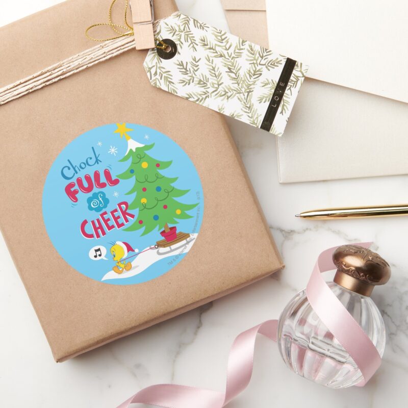 Chock Full Of Cheer Classic Round Sticker vinyl sticker, waterproof durable collectible sticker for laptop, phone, bottle, bike, notebook, helmet, and accessories.