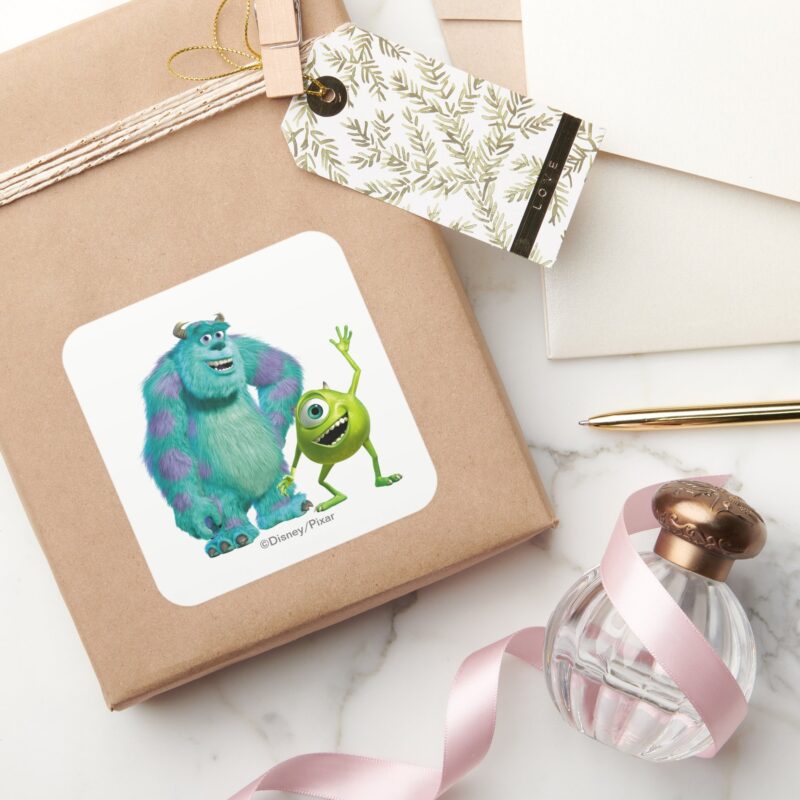 Classic Mike Sully Waving Disney Square Sticker vinyl sticker, waterproof durable collectible sticker for laptop, phone, bottle, bike, notebook, helmet, and accessories.