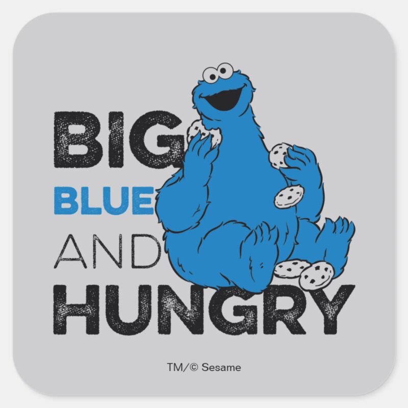 Cookie Monster Big Blue Hungry Square Sticker vinyl sticker, waterproof durable collectible sticker for laptop, phone, bottle, bike, notebook, helmet, and accessories.