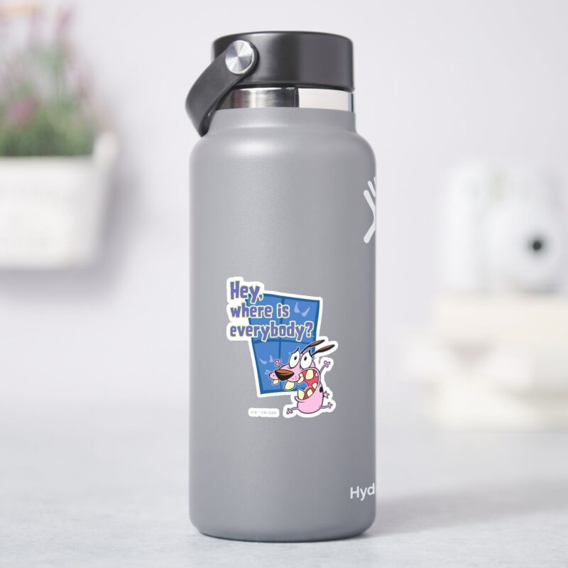 Courage The Cowardly Dog Where Is Everybody Sticker vinyl sticker, waterproof durable collectible sticker for laptop, phone, bottle, bike, notebook, helmet, and accessories.