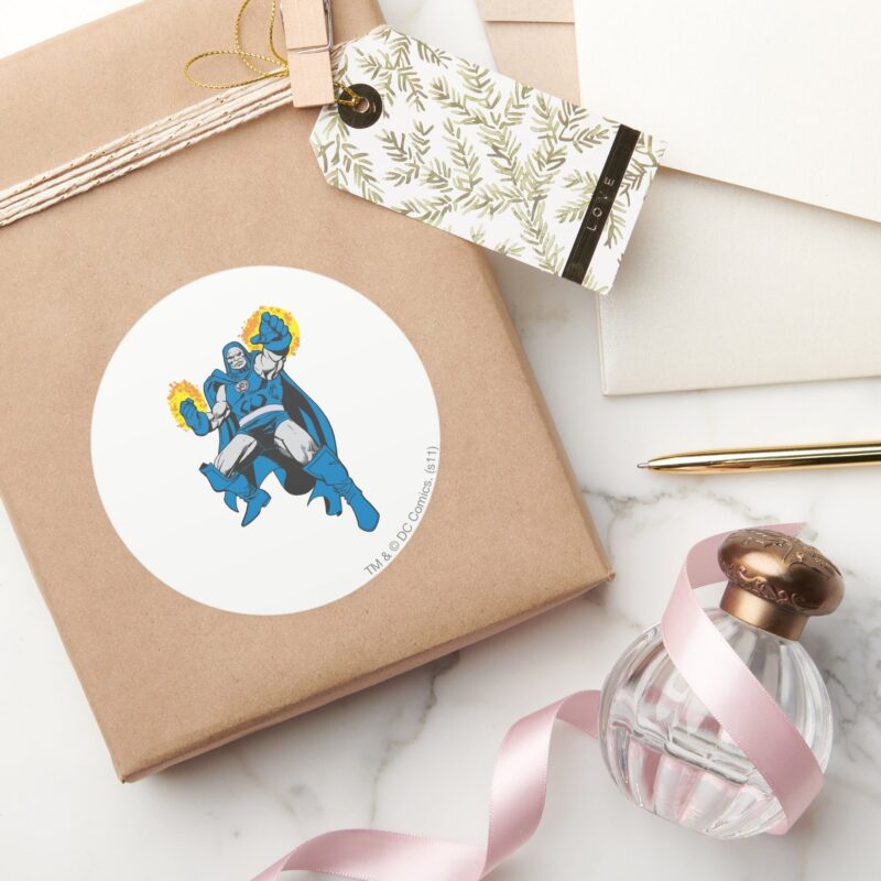Darkseid The Omega Force Classic Round Sticker vinyl sticker, waterproof durable collectible sticker for laptop, phone, bottle, bike, notebook, helmet, and accessories.