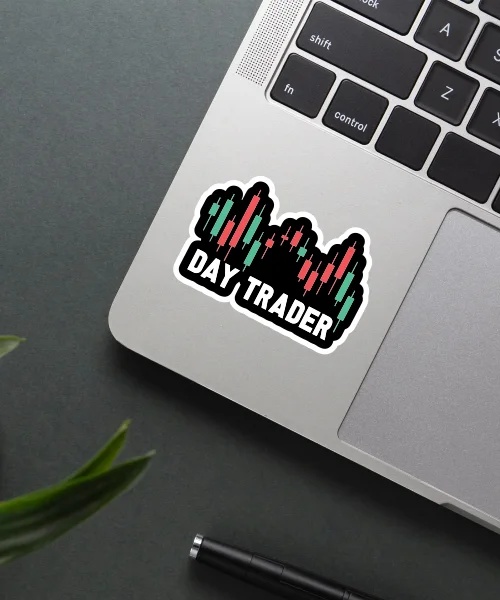 Day Trader Sticker vinyl sticker, waterproof durable collectible sticker for laptop, phone, bottle, bike, notebook, helmet, and accessories.