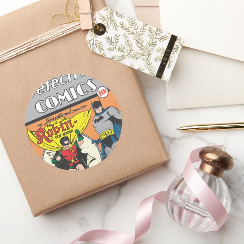 Detective Comics 38 Classic Round Sticker vinyl sticker, waterproof durable collectible sticker for laptop, phone, bottle, bike, notebook, helmet, and accessories.