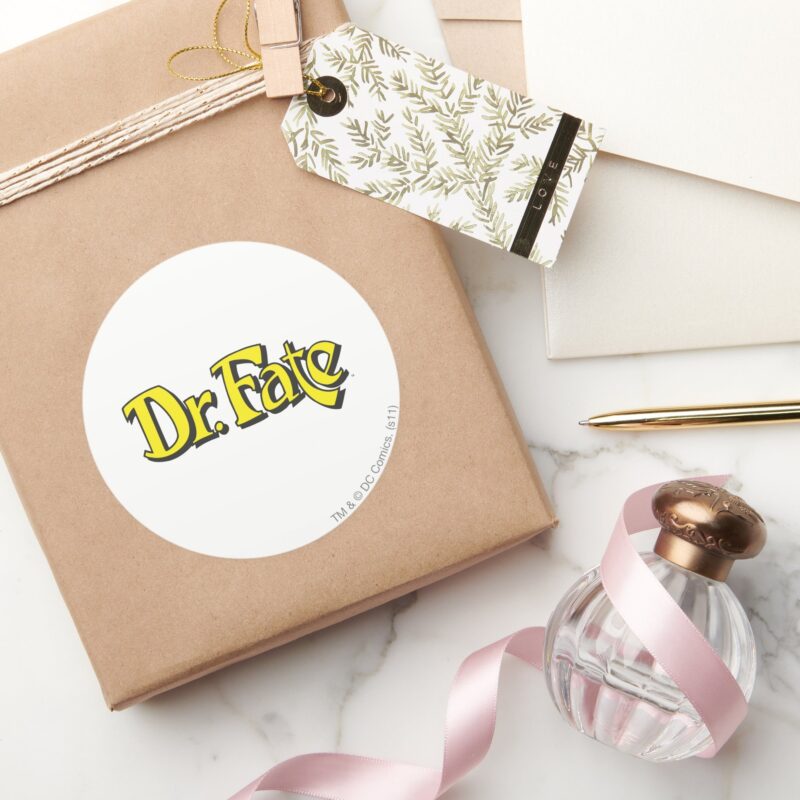 Dr. Fate Logo Classic Round Sticker vinyl sticker, waterproof durable collectible sticker for laptop, phone, bottle, bike, notebook, helmet, and accessories.