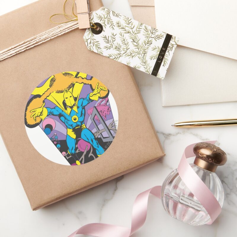 Dr. Fate Manipulates Magic Classic Round Sticker vinyl sticker, waterproof durable collectible sticker for laptop, phone, bottle, bike, notebook, helmet, and accessories.