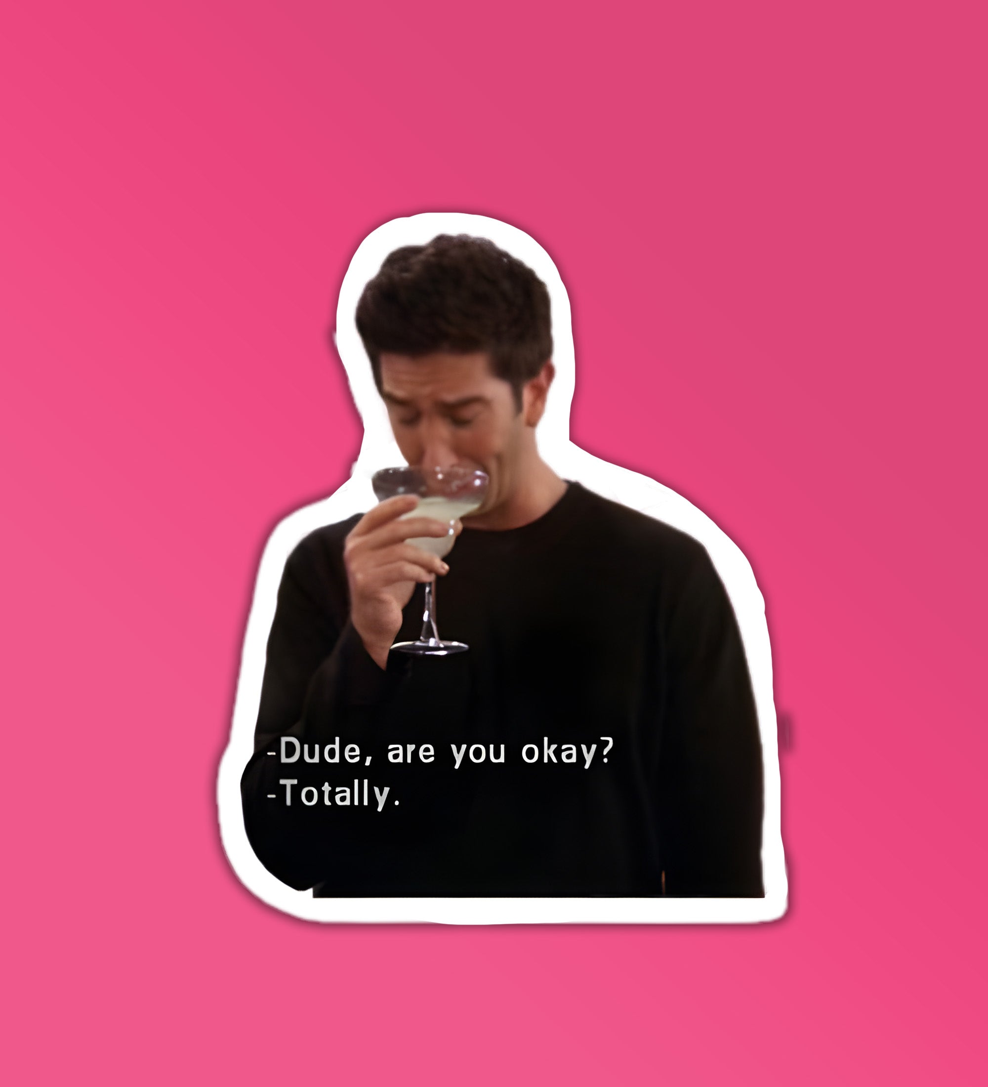Dude Are You Okay Friends vinyl sticker, waterproof durable collectible sticker for laptop, phone, bottle, bike, notebook, helmet, and accessories.