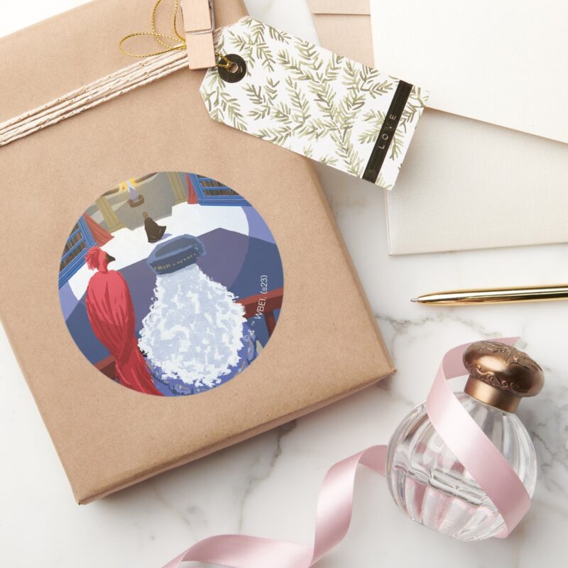 Dumbledore Fawkes On Balcony Classic Round Sticker vinyl sticker, waterproof durable collectible sticker for laptop, phone, bottle, bike, notebook, helmet, and accessories.