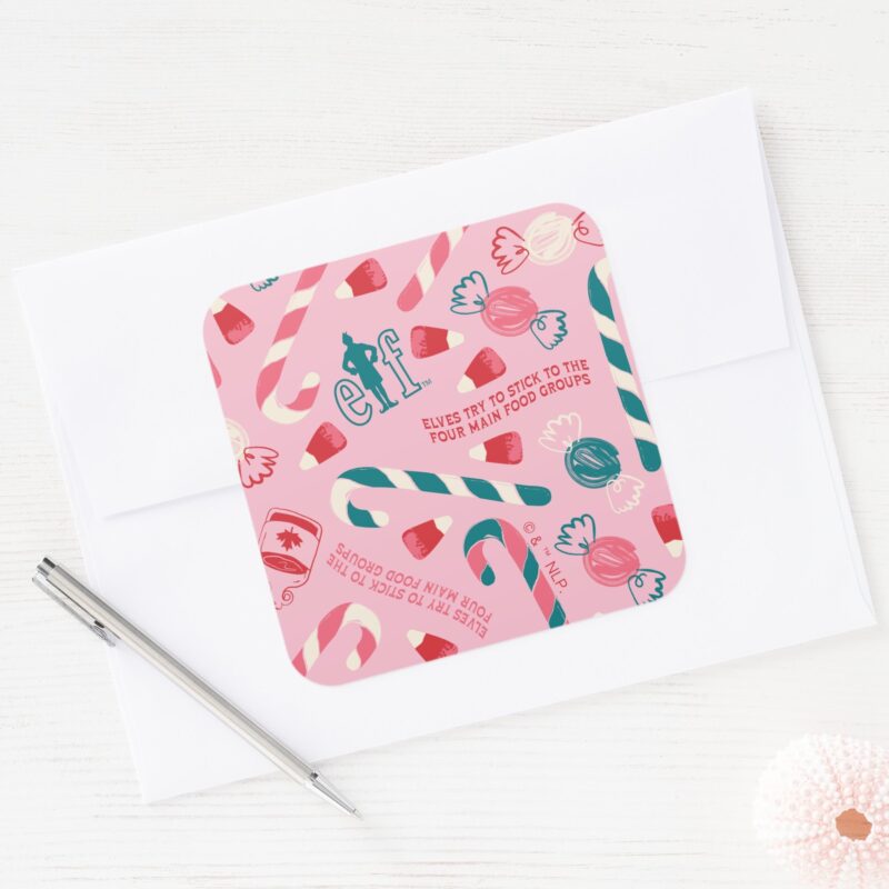 Elf Holiday Candy Pattern Square Sticker vinyl sticker, waterproof durable collectible sticker for laptop, phone, bottle, bike, notebook, helmet, and accessories.