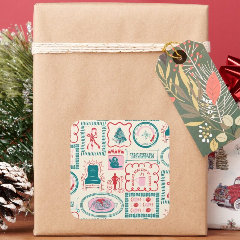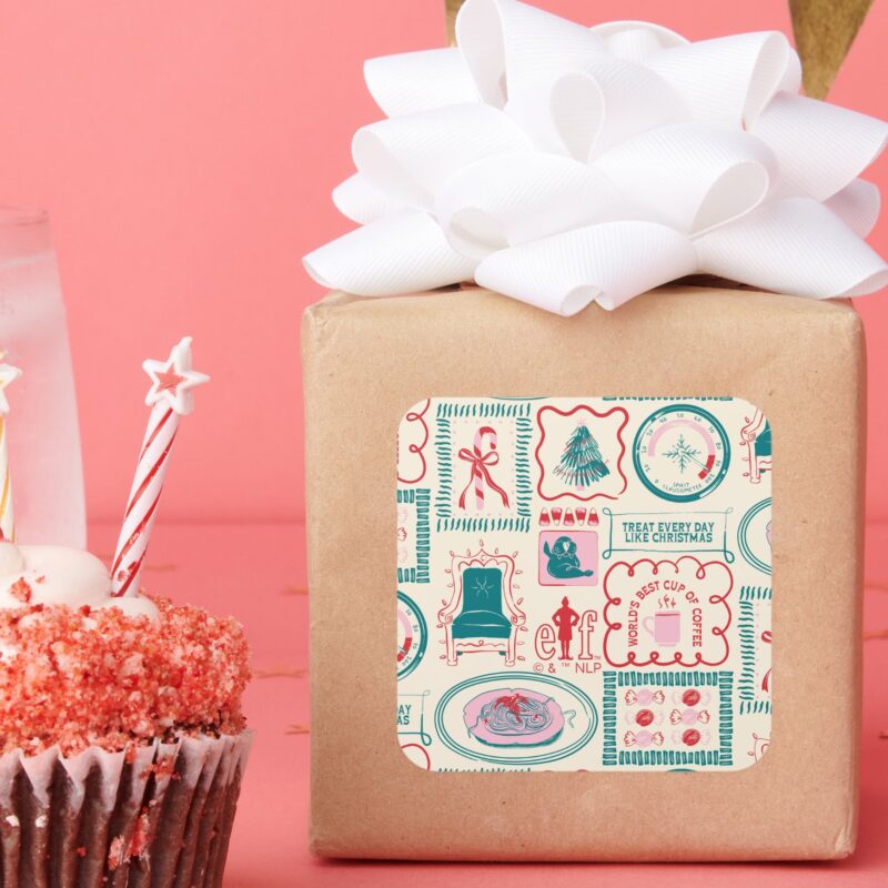 Elf Holiday Icon Pattern Square Sticker vinyl sticker, waterproof durable collectible sticker for laptop, phone, bottle, bike, notebook, helmet, and accessories.