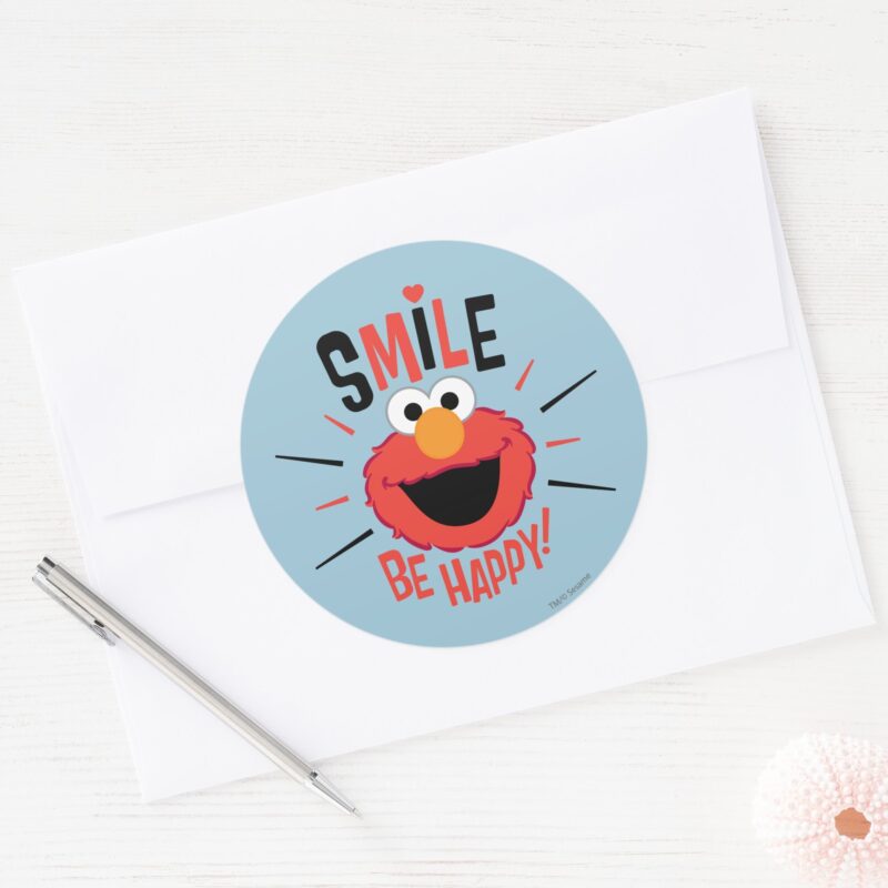 Elmo Happy Smile Classic Round Sticker vinyl sticker, waterproof durable collectible sticker for laptop, phone, bottle, bike, notebook, helmet, and accessories.
