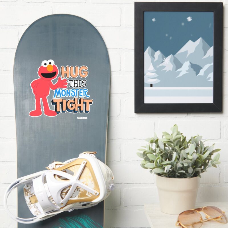 Elmo Hug This Monster Tight Sticker vinyl sticker, waterproof durable collectible sticker for laptop, phone, bottle, bike, notebook, helmet, and accessories.