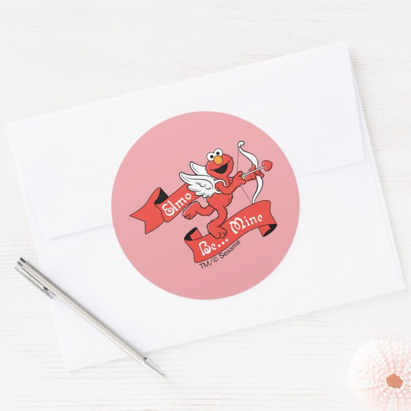 Elmo Valentines Cupid Classic Round Sticker vinyl sticker, waterproof durable collectible sticker for laptop, phone, bottle, bike, notebook, helmet, and accessories.