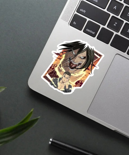 Eren Attack Titan Sticker vinyl sticker, waterproof durable collectible sticker for laptop, phone, bottle, bike, notebook, helmet, and accessories.