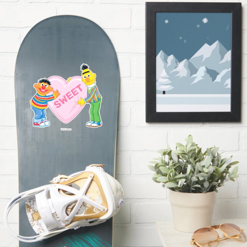 Ernie Bert Big Valentines Heart Sticker vinyl sticker, waterproof durable collectible sticker for laptop, phone, bottle, bike, notebook, helmet, and accessories.