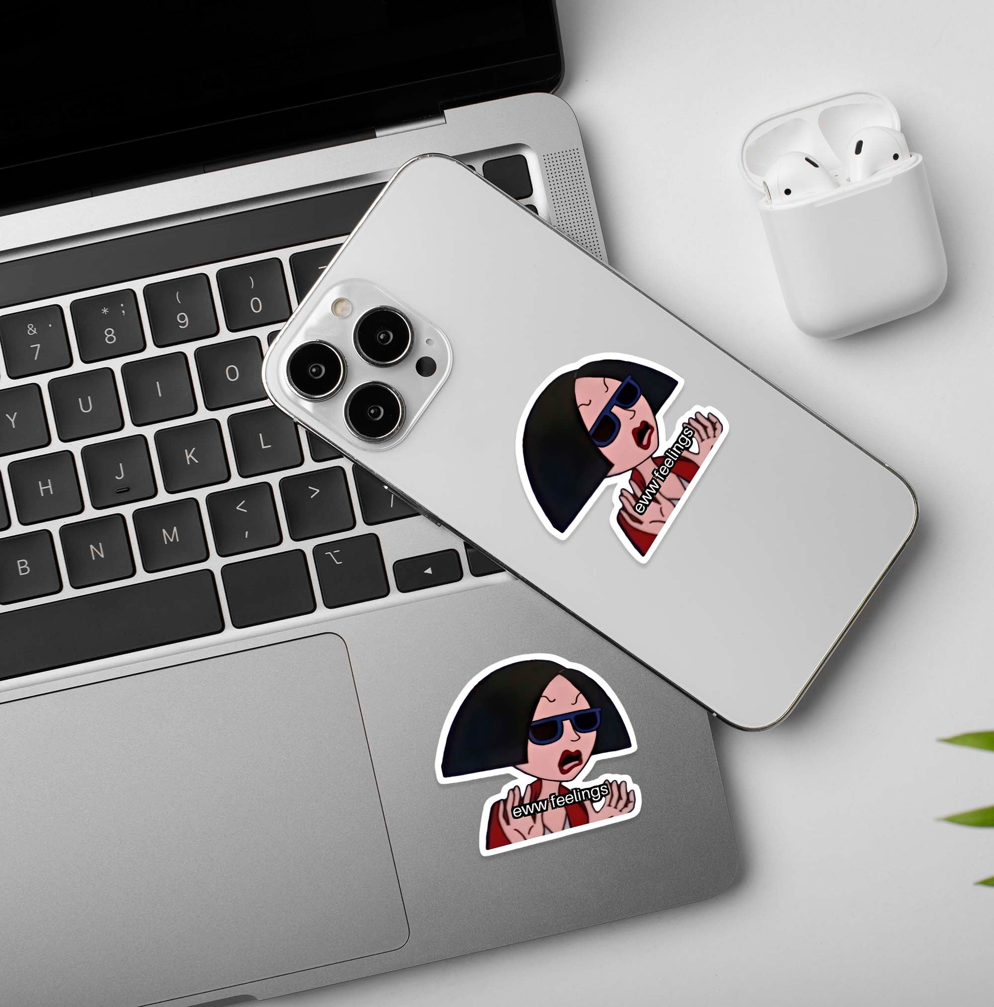 Ew Feelings is designed to capture the personality, emotion, and visual appeal that make the design instantly recognizable and engaging. The artwork reflects the core essence of the character or concept, delivering a clear vibe that fans can connect with at first glance. Whether it represents nostalgia, humor, strength, cuteness, or attitude, Ew Feelings feels expressive and meaningful rather than generic. This vinyl sticker comes with a clean transparent or white border that enhances the design while keeping it versatile for different surfaces. It adds personality to everyday items like laptops, phones, bottles, notebooks, bikes, helmets, and desks. The look is bold yet balanced, making it suitable for both collectors and casual fans. Ew Feelings is made to stand out without overpowering its surroundings, acting as a small but impactful visual statement. The sticker is waterproof, scratch-resistant, and durable, ensuring long-lasting quality for indoor and outdoor use. Easy to apply and remove, it’s perfect for personalizing your space or gear. Whether you’re expressing fandom, mood, or style, Ew Feelings works as a simple, high-quality sticker that adds character and visual interest wherever it’s placed.