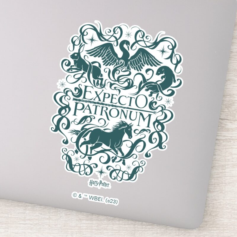 Expecto Patronum Filigree Graphic Sticker vinyl sticker, waterproof durable collectible sticker for laptop, phone, bottle, bike, notebook, helmet, and accessories.