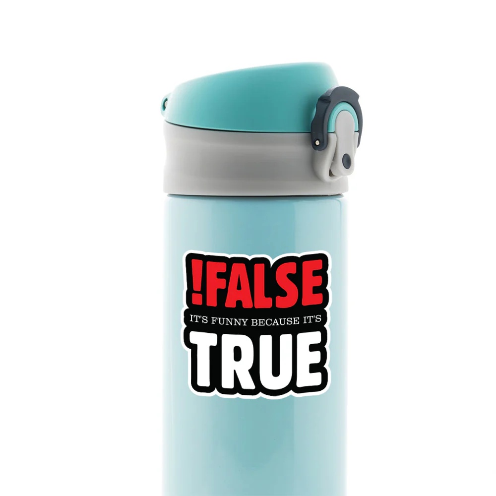 False Its Funny Because Its True Witty Stickers vinyl sticker, waterproof durable collectible sticker for laptop, phone, bottle, bike, notebook, helmet, and accessories.